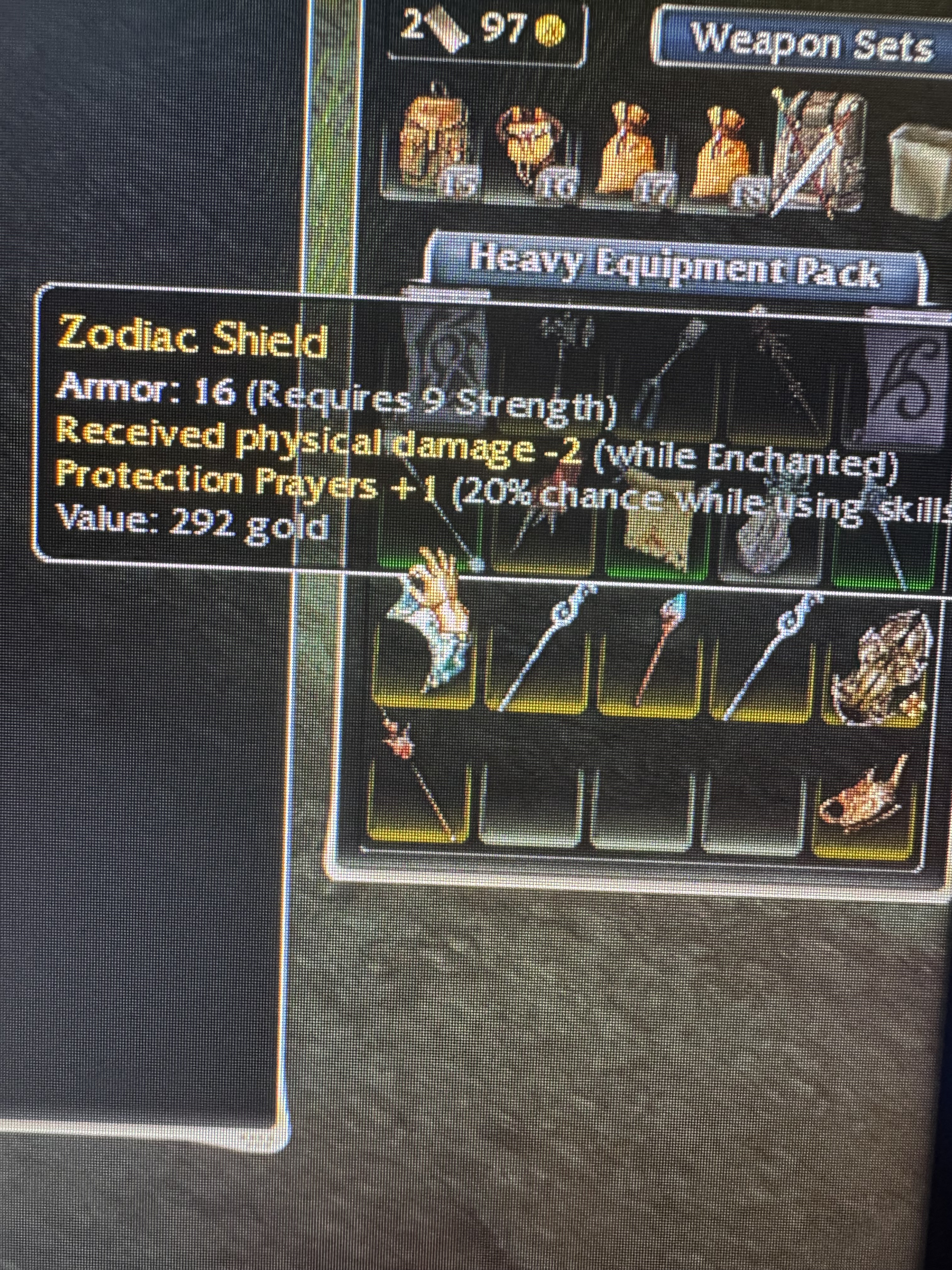 OS Zodiac Q9 Str double mod Prot shield Yojimbo_Ronin July 16, 2025 at 11:39 PM Looking for some advice on prices for my shield.Its old school req9 str -2 enchant +1 20% protection prayers.Thanks for help advance.