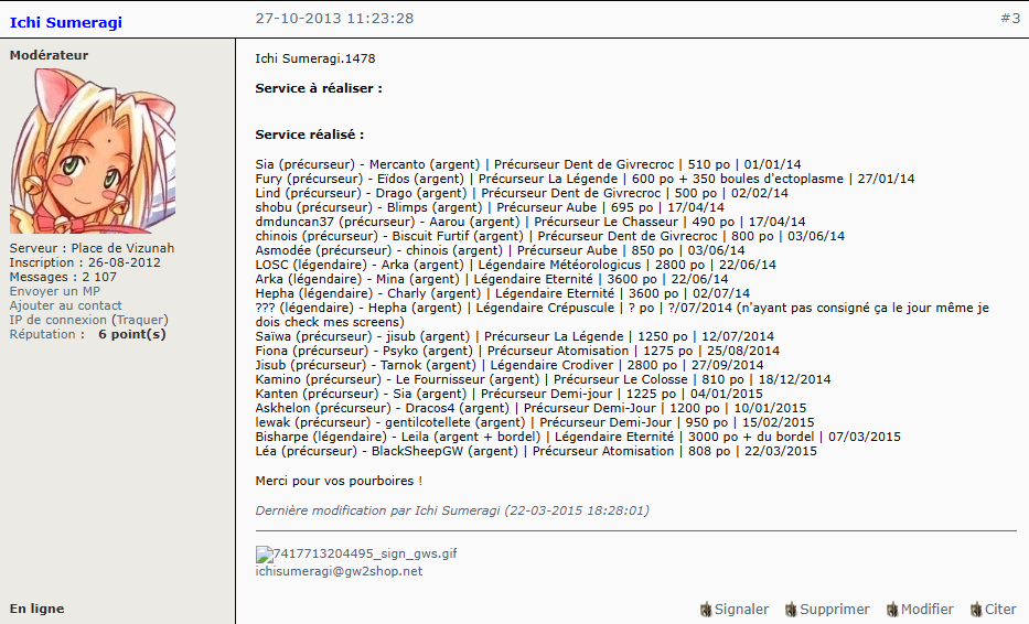 I am not very well known around these parts, but I've been a moderator for the french website for a while GW2Shop and have done quite a bit of middlemanning (?) there for Guild Wars 2 back when it was still possible :